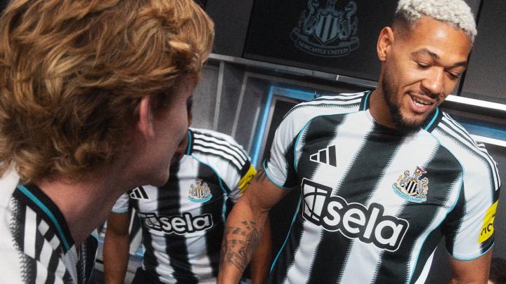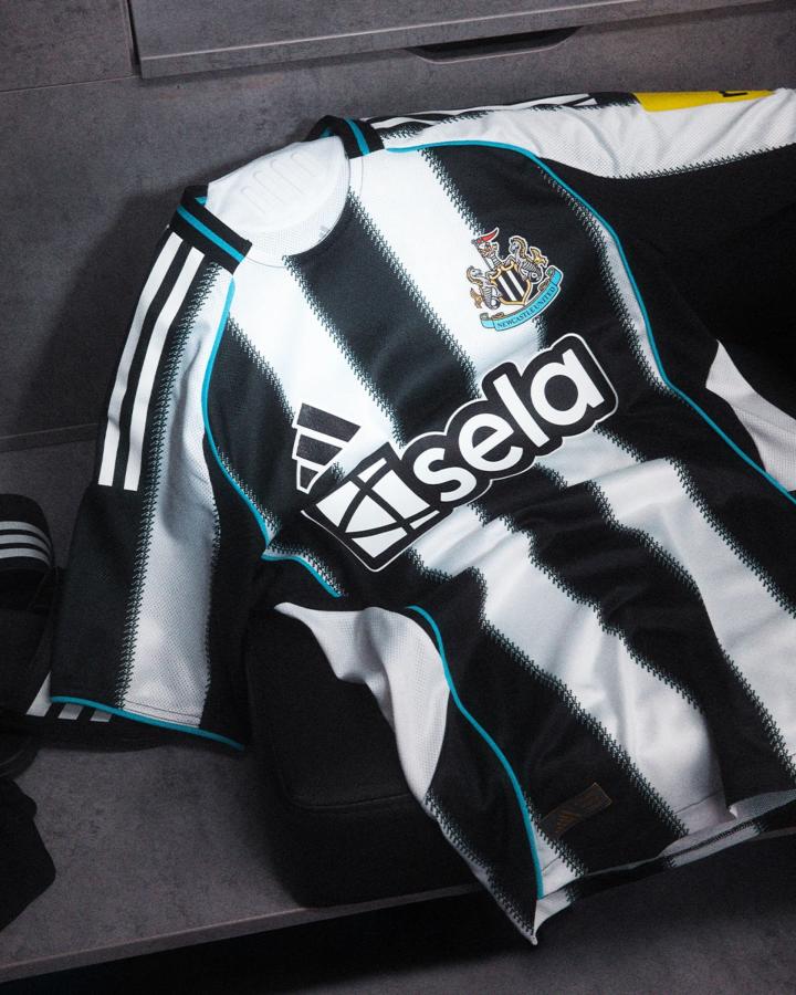 新赛季球衣的设计不仅仅是对俱乐部传统元素的致敬,更是为了与时俱进,符合现代潮流。搭配黑色短裤和袜子,以及保留了阿迪达斯标志性三道杠和纯白「NUFC」字样,整体简洁大方。胸前印有全彩俱乐部徽章,而后领处印有"Howay the Lads"(加油吧小伙子们)的口号,以表达对球队和球迷的紧密联系。